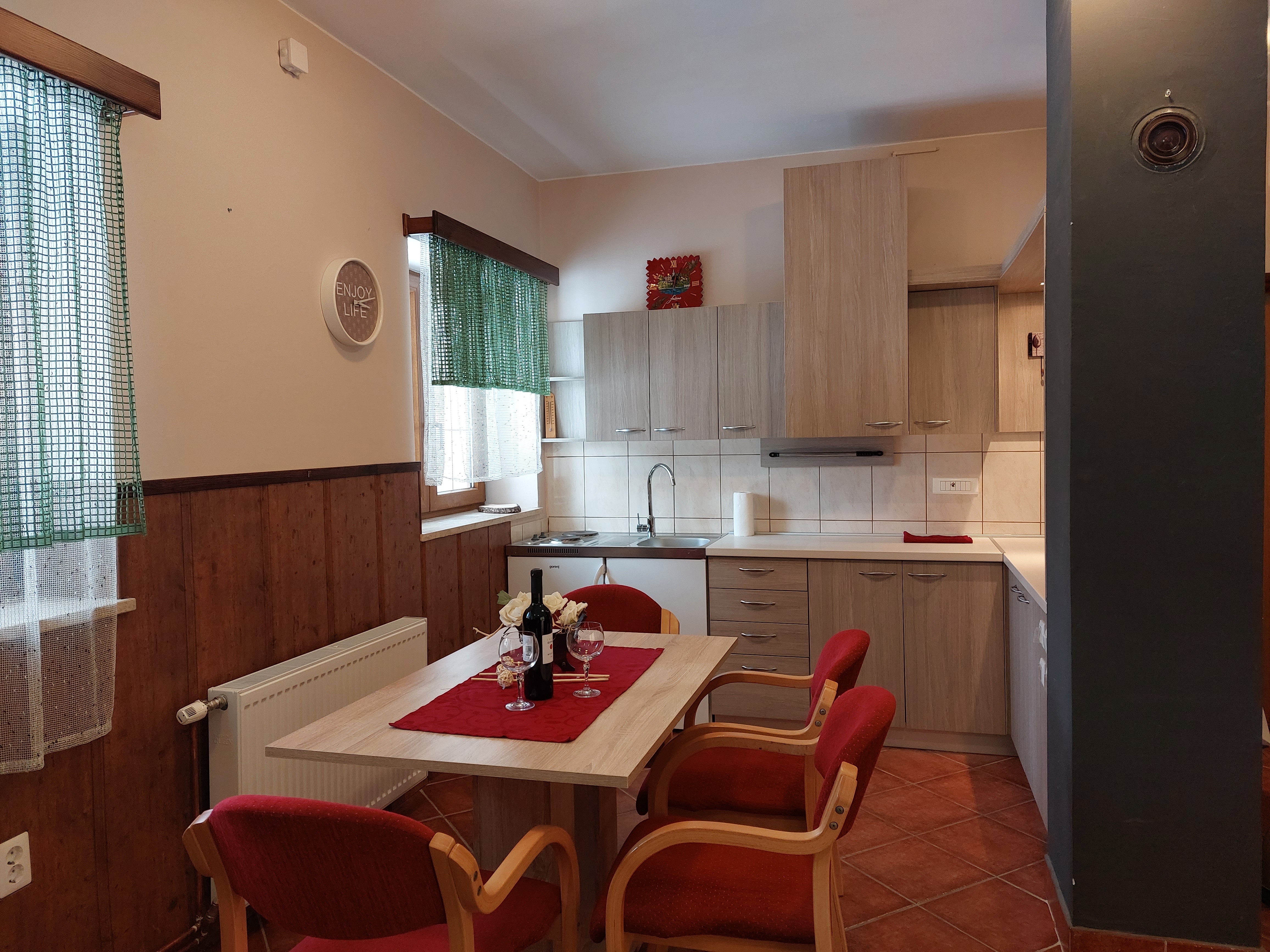 Apartman Gorica 1 - nalazi se u prizemlju kuće sadrži jednu sobu sa bračnim krevetom te dnevni boravak sa mogućim pomoćnim ležajevima, opremljenu kuhinju, blagovaonicu, kupaonicu, TV, Wi-Fi te vanjsku terasu.