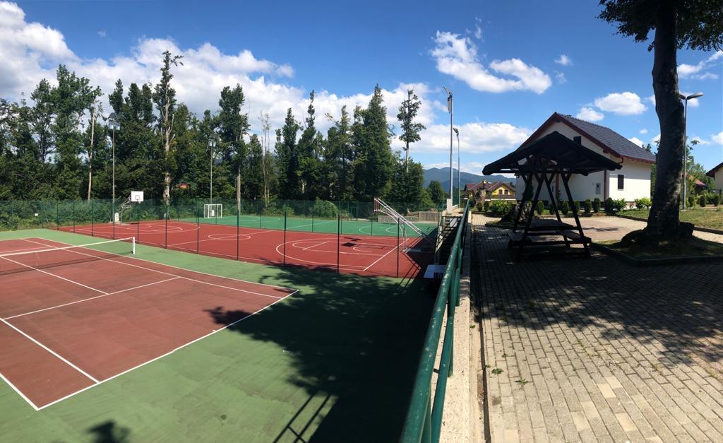 nalaze se sportski tereni za tenis, košarku i nogomet. Parkiralište je