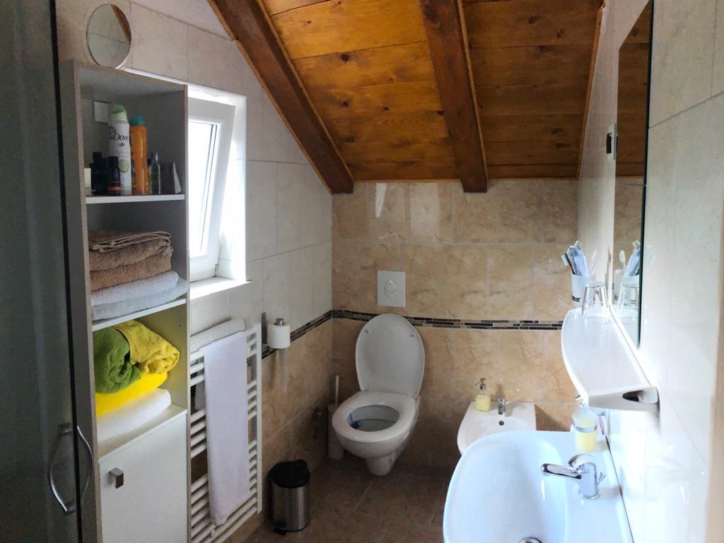 kabinu, toalet, bide, umivaonik, ručnike i fen .